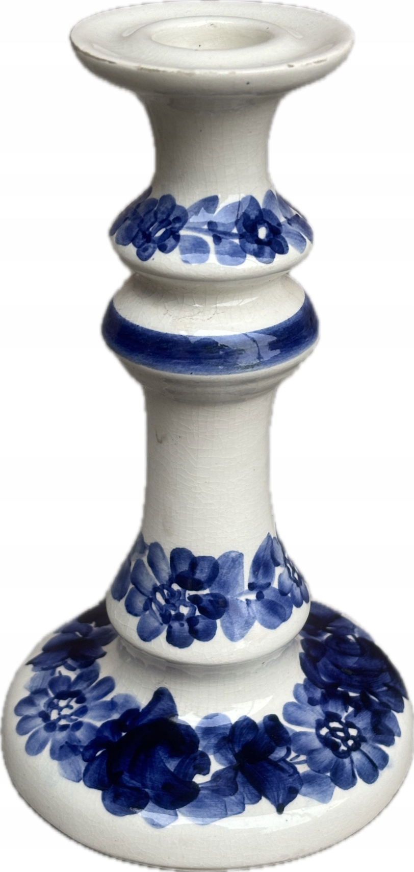 Фаянсовий свічник із Влоцлавека 1970-1980-х років. Підписано. Ручний розпис. Шаблон 1095/2 затверджений у 1970 р. Проект Віта Плажевського. Розміри; висота 17,5 х 10 см. Незначні сліди використання. Стан на фото.