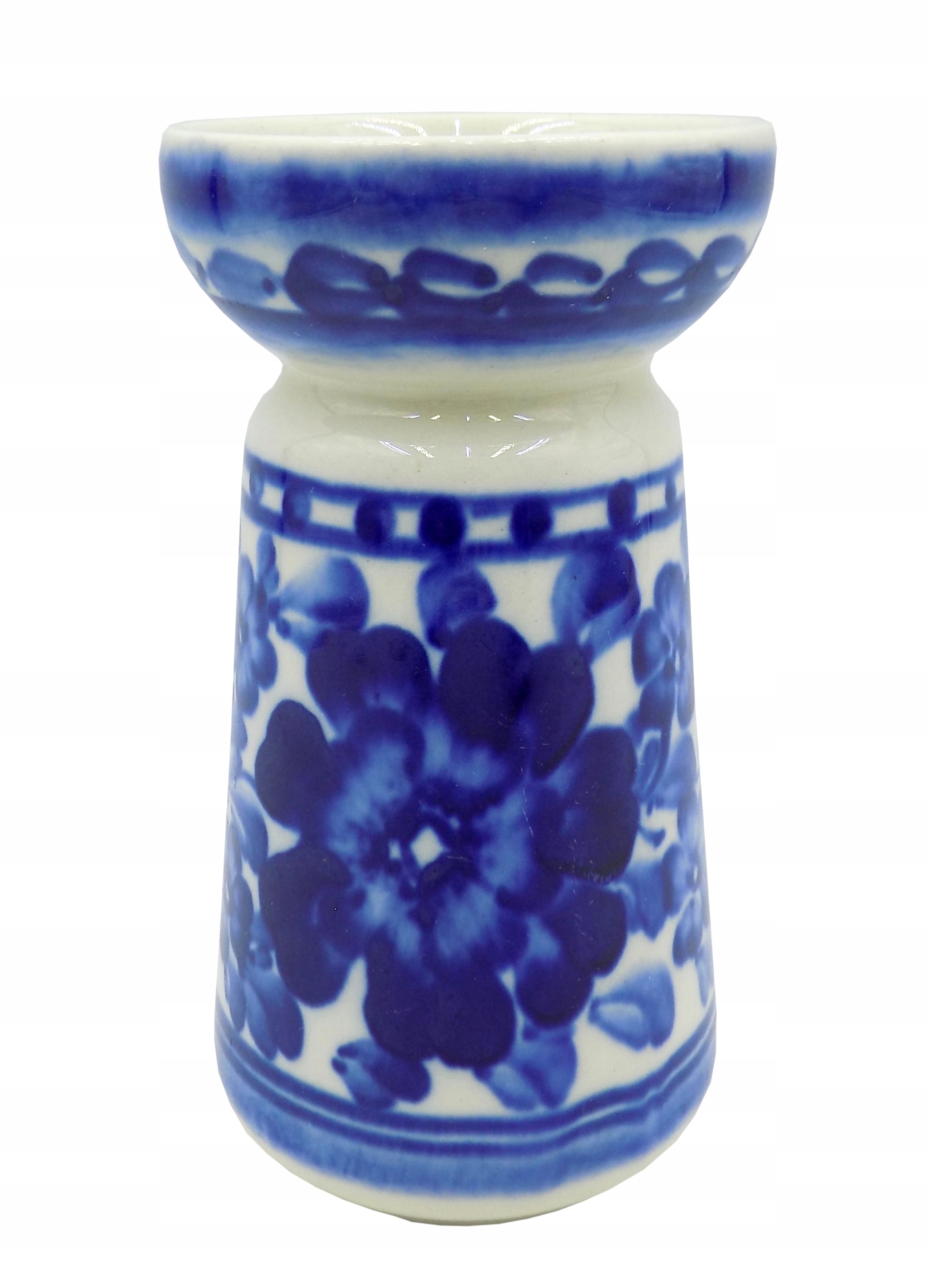 Фаянсовий свічник із Влоцлавека 1970-1980-х років. Підписано. Ручний розпис. Розміри; висота 14 х 7,5 см. Сліди використання.