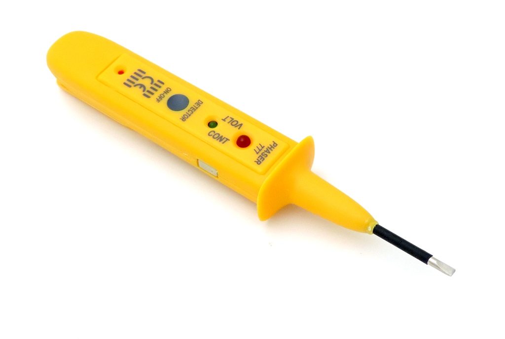 Тестує безперервність провідності (розриви в ланцюгах, запобіжники, лампочки тощо) до опору приблизно 1 МОм. Безконтактно виявляє дроти під напругою в стінах і пристроях на відстані до 50 см (регульована чутливість виявлення)