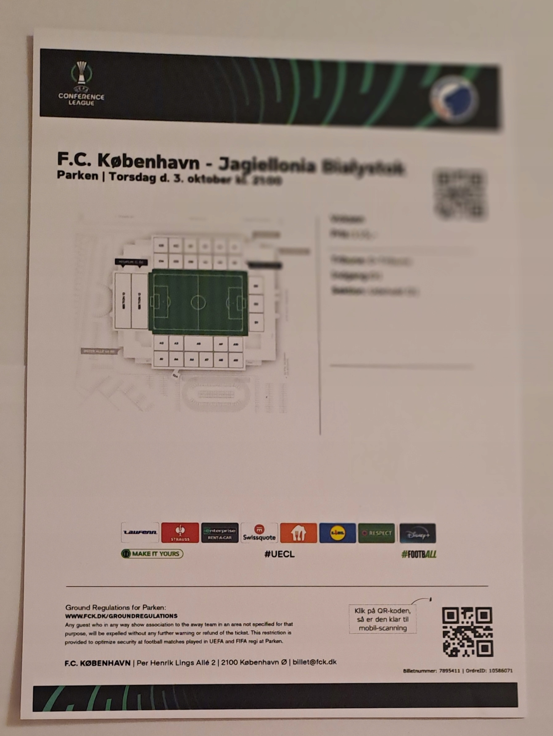 FC КОПЕНГАГЕН - ЯГЕЛЛОНІЯ БІЛОСТОК 03-10-2024 КВИТОК А4 ЖОРСТКИЙ ПАПІР