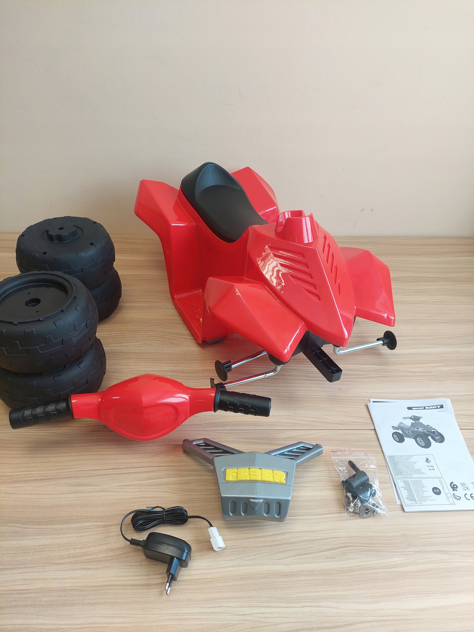 - Червоний < b >квадроцикл із акумулятором 6 В із зарядним пристроєм.