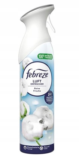 Febreze Air з ароматом свіжої бавовни — ефективний освіжувач повітря, який не тільки маскує, але й нейтралізує неприємні запахи. Завдяки передовій технології усунення запаху, він ідеально працює в будь-якій кімнаті - кухні, ванній кімнаті, спальні або вітальні. Залишає тонкий приємний аромат свіжовипраної тканини.