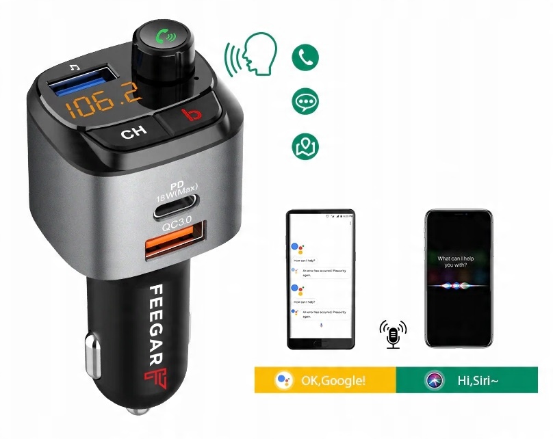 Feegar Q100 FM-передавач Bluetooth QC 3.0 USB PD