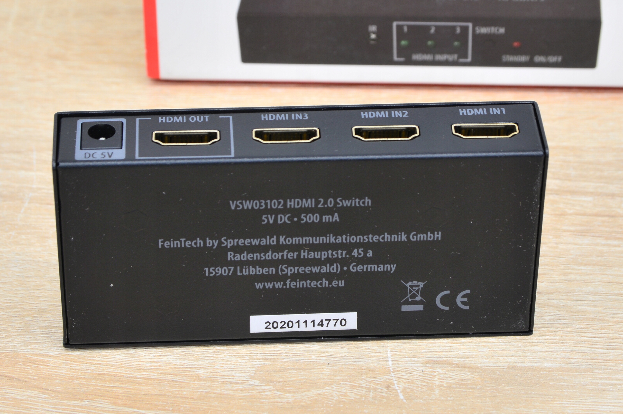 - назва товару: перемикач HDMI FeinTech VSW03102 3 x 1, автоматичне перемикання, 4K 60 Гц HDR CEC Ultra-HD