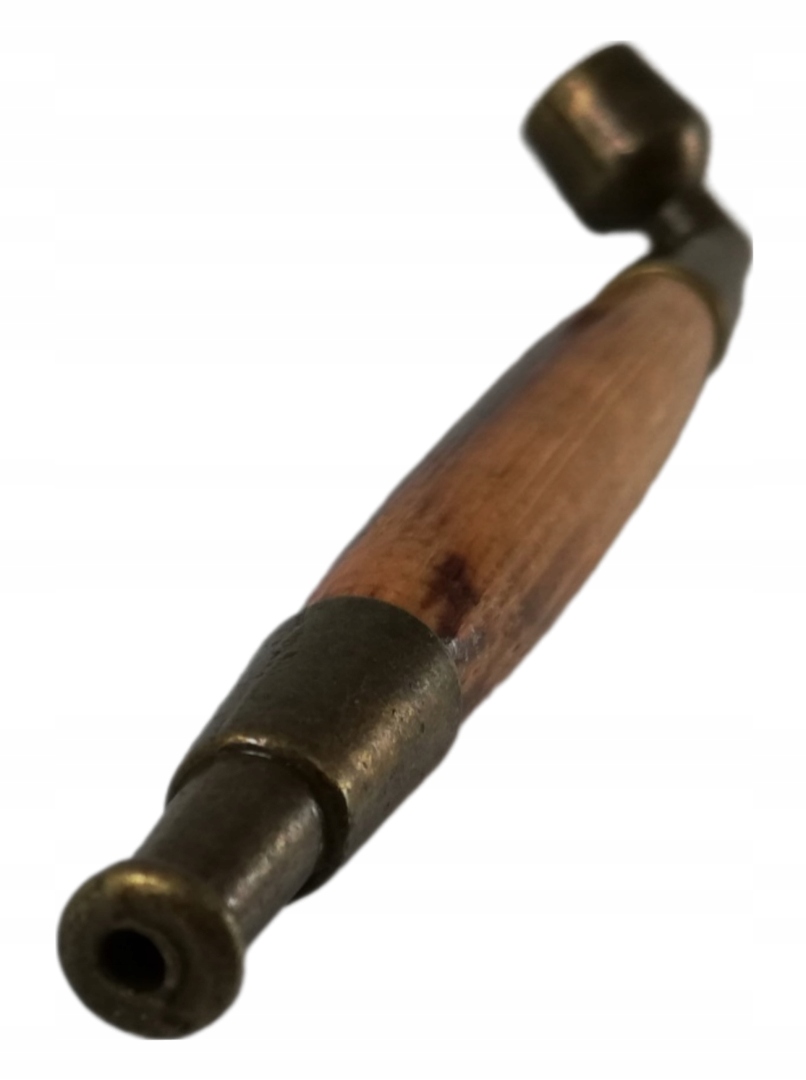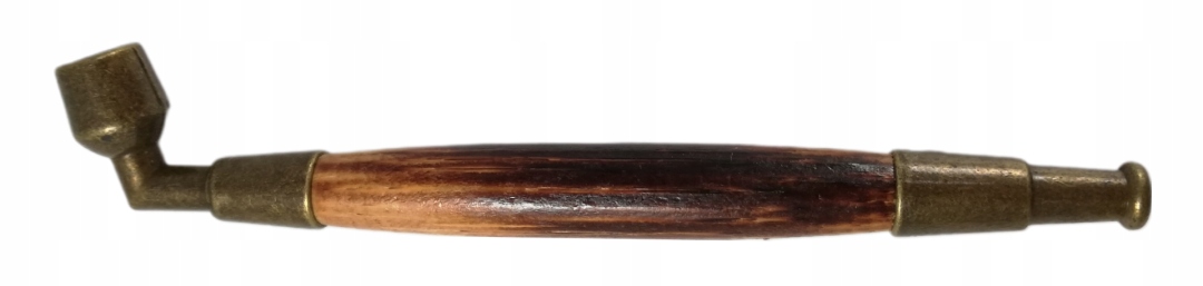 Пропозиція поширюється на стильну та практичну трубу, яку видно на фото. Чаша і мундштук виготовлені з металу. Центральна частина виконана з дерева. Трубка маленька і зручна, тому її можна брати куди завгодно. Він легко поміститься у вашій кишені. Виглядає дуже красиво. Довжина ствола 11,5 см.