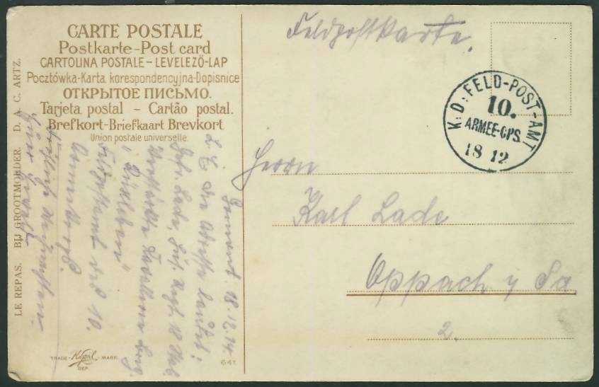 Feldpost 1914 r / K.D. Feld-Post-Amt 10. Armee GPS