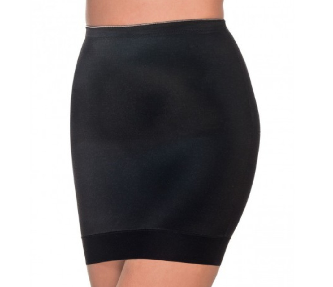 - матеріал тонкий і гладкий, гнучкий у всіх напрямках, ідеально формує форми, даруючи відчуття комфорту. низ під'юбника оброблений плоскою і широкою гумкою. Зсередини є хвиляста силіконова смужка, яка запобігає сповзанню під'юбника. Пояс оброблений широкою гумкою