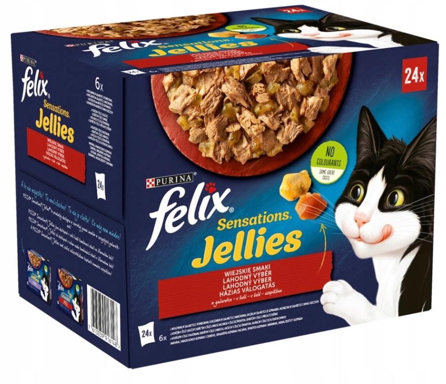 Felix Sensations – це вибір унікальних страв, які виглядають, пахнуть і смакують так само смачно, як та їжа, яку ви могли б приготуйся. Кожен рецепт, приготований з високоякісних інгредієнтів, містить ніжні шматочки в соковитому желе, яке сподобається вашій кішці!