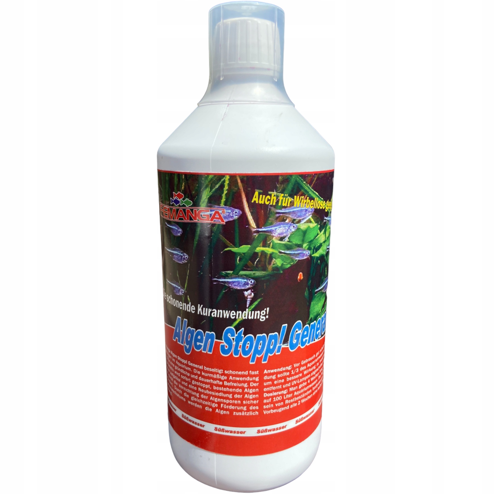 Femanga Algen Stopp Generalне тільки бореться з водоростями , але під час цього процесу він підтримує ослаблені їх дією рослини та позитивно впливає на їхній ріст. Користуватися препаратом дуже просто. На кришці є прозора мірна чашка, яка полегшить точне дозування. Повне лікування триває чотири тижні. Варто пам'ятати, що найкращого ефекту можна досягти, якщо досить швидко реагувати, коли ми помічаємо водорості. У більш занедбаних акваріумах процес може тривати довше, але Algen Stopp General впорається і з такими випадками агент Вхідні речовини, такі як активоване вугілля та абсорбенти, слід видалити з фільтраціїоскільки вони можуть знизити ефективність препарату. Ви також повинні вимкнути УФ-стерилізатор. Після видалення водоростей з акваріуму виробник рекомендує профілактичне використання половини дози кожні два тижні.