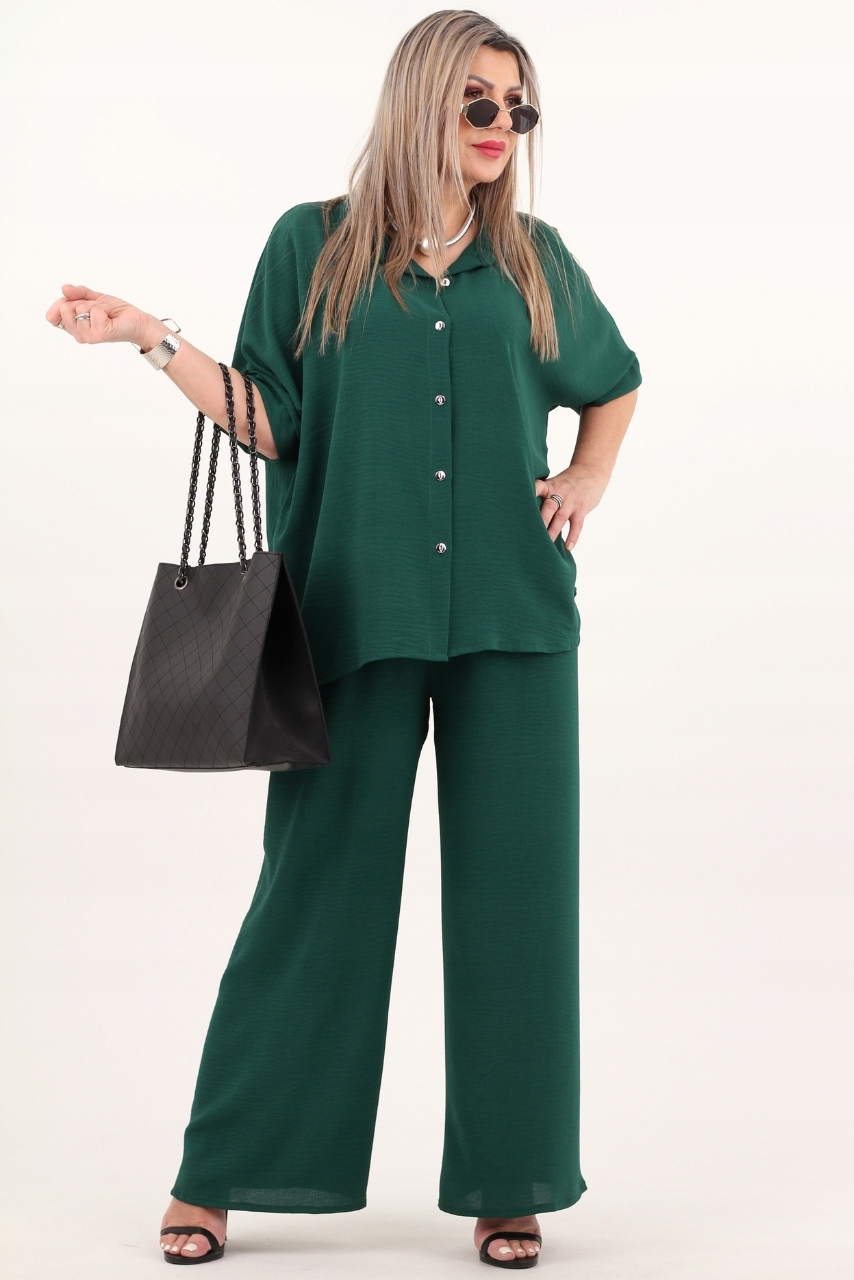 FEMIMODA комплект жіночий зелений plus size (великі ) на гудзики для причастя літній комплект повітряний вільний