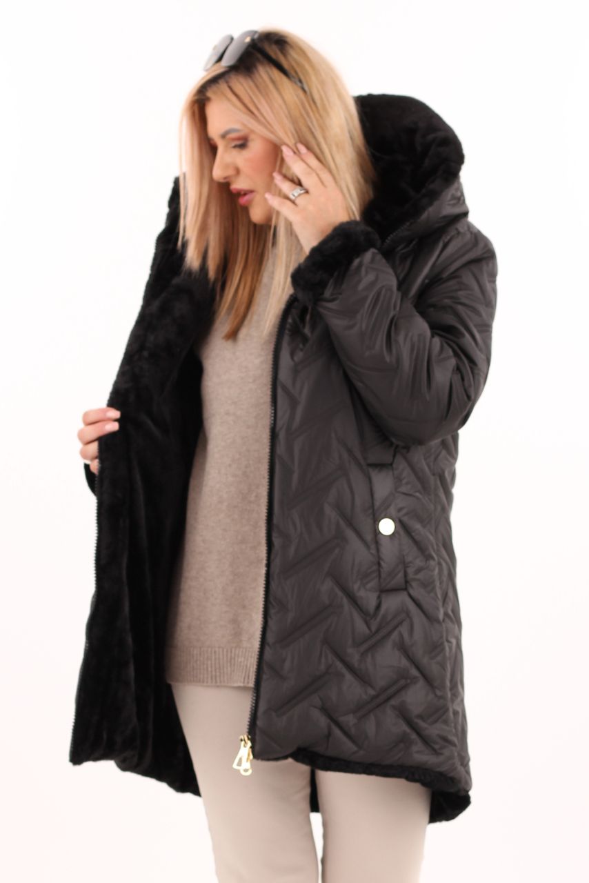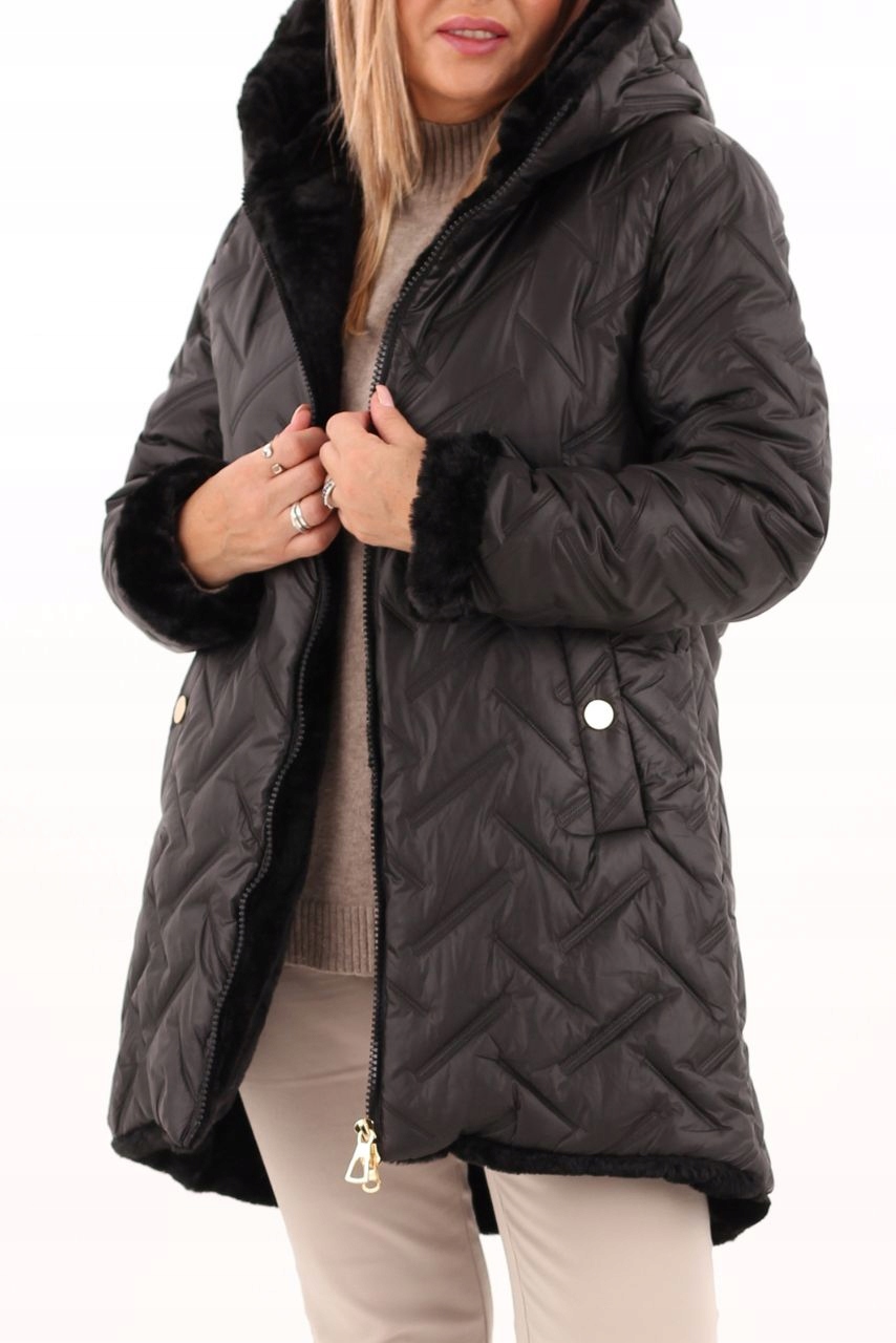 FEMIMODA kurtka damska pikowana z kapturem na zimę futerko płaszczyk z futerkiem prosta luźna
