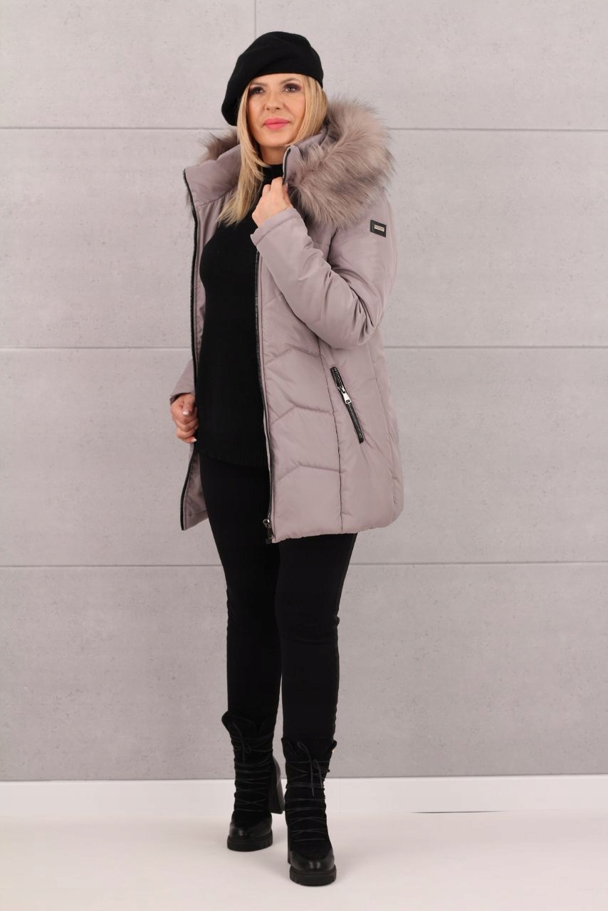 FEMIMODA kurtka damska puchowa odpinany kaptur futerko długa puchowa ocieplana taliowana krótka