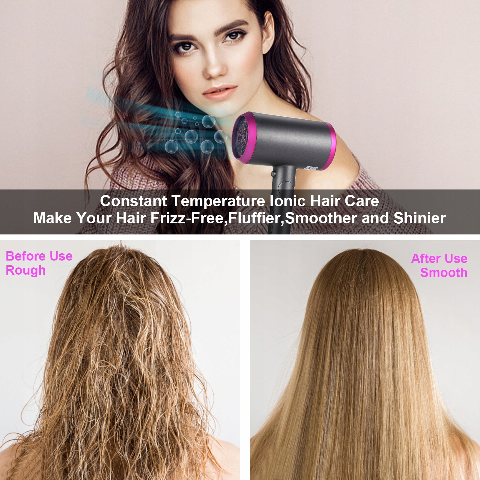 3. Регульовані налаштування: з 2 регульованими налаштуваннями швидкості вітру та перемикачем прохолодного/гарячого повітря, цей фен дозволяє адаптованим стилем та сушінням відповідати типу волосся та стилю.