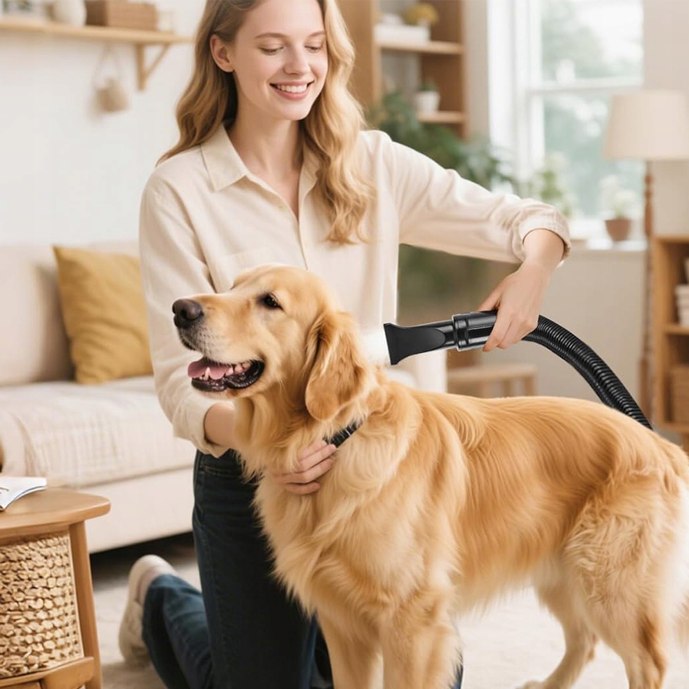 Різні насадки відповідають усім потребам різних домашніх тварин. Незалежно від того, має ваш вихованець довге, густе, кучеряве або коротке волосся, цей фен допоможе приборкати його гриву. Масаж, розчісування, очищення та сушіння – все в одному. Потовщений складчастий шланг фена для собак термостійкий. Він довгий і гнучкий, тому у вас не виникне проблем із сушінням вашої собаки, навіть якщо ваш вихованець вередує під час стрижки.
