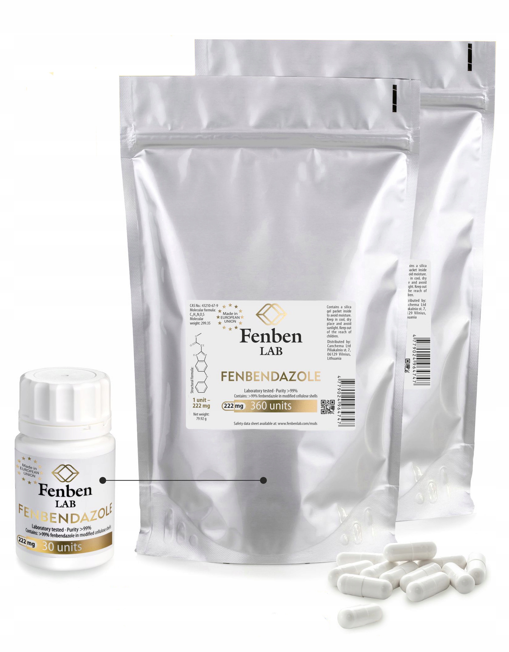 Фенбендазол 222 мг> 99% чистий, лабораторний тестування, 30 капсул за лабораторією Fenben