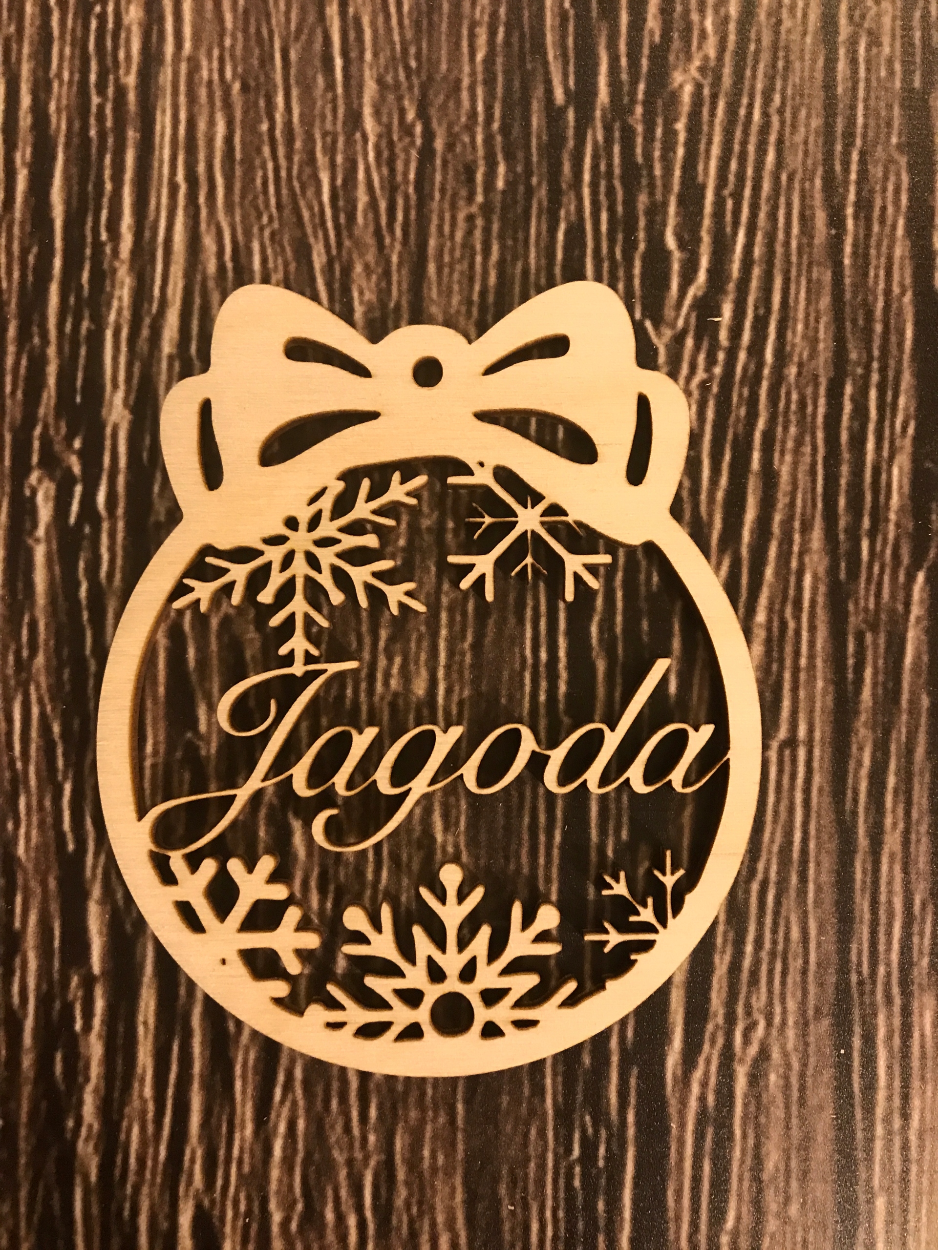 Фенечка дерев'яна з назвою на ялинку, 5 візерунків