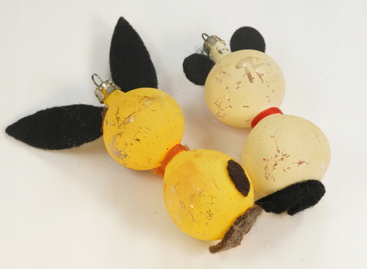 Оригінальні, надзвичайно гарні, старі декоративні дві "різдвяні дрібнички" Польської Народної Республіки, набір дрібничок: Кролик-заєць з вухами та ведмедик, скло + тканина, оригінальний живопис того часу; розмір: висота 8 і 10 см, стан хороший+, фенечки повні, скло без пошкоджень, місцями помітні потертості фарби. Рекомендую, оригінальна, рідкісна річ за доступною ціною. Надзвичайно цікавий рідкісний оригінальний предмет. Стан добре видно на фото в описі аукціону.
