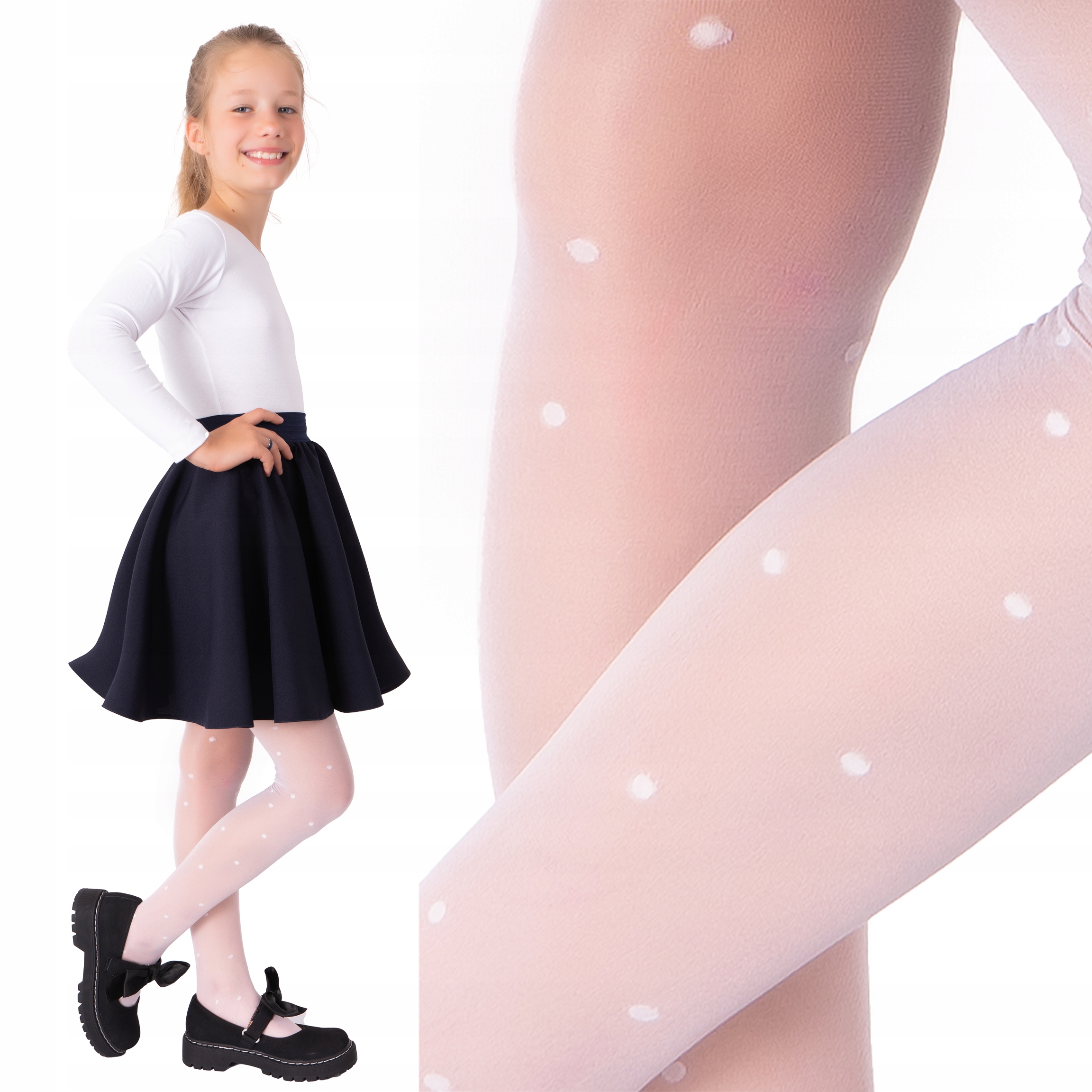 Відкрийте для себе красу та елегантність білих колготок для дівчаток з ніжним блиском, прикрашених чарівним точковим малюнком. Ці колготки бренду Fenome є ідеальним вибором для особливих випадків, забезпечуючи комфорт і неповторний вигляд вашої дочки.