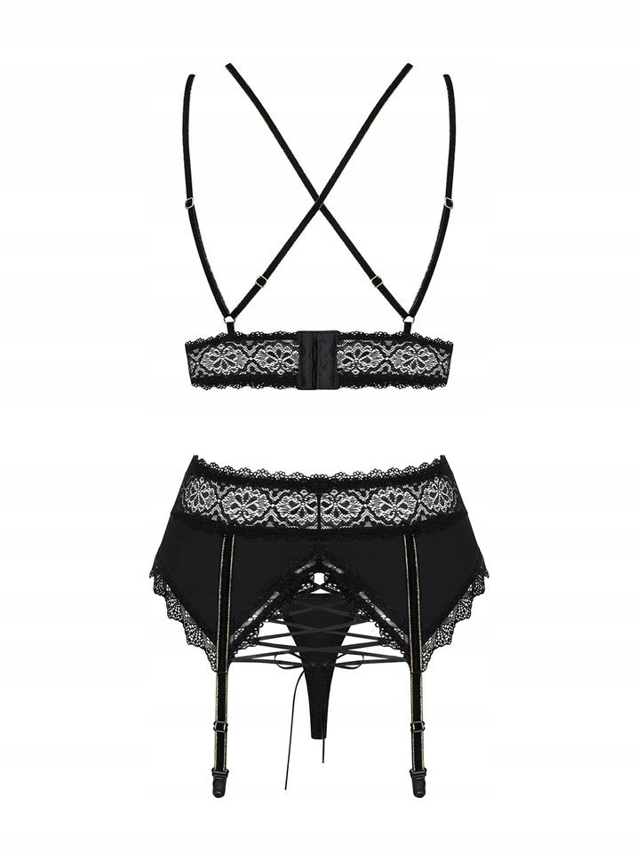 - У комплект входить бюстгальтер, підв'язка та стрінги