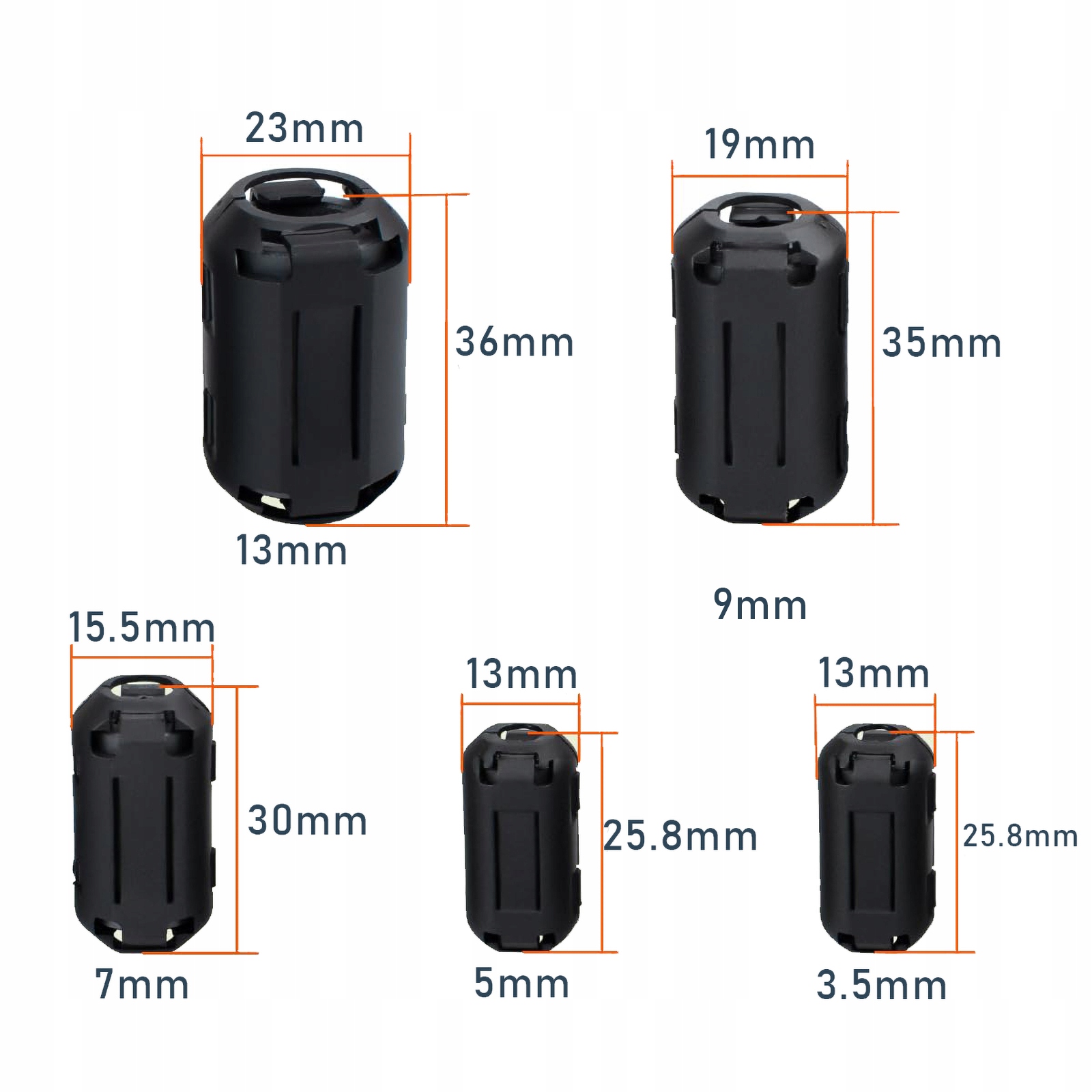ФЕРИТОВИЙ СЕРДЕЧНИК ФІЛЬТРУ 40 ШТ. Для КАБЕЛЮ 3,5/5/7/9/13 мм