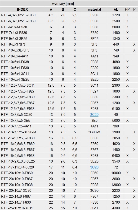 Феритові кільцеві (тороїдальні) сердечники RTF