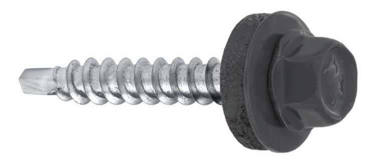 Самонарізний шуруп з EPDM-шайбою з оцинкованого покриття для кріплення листів, металочерепиці та листового металу до дерев’яної основи.