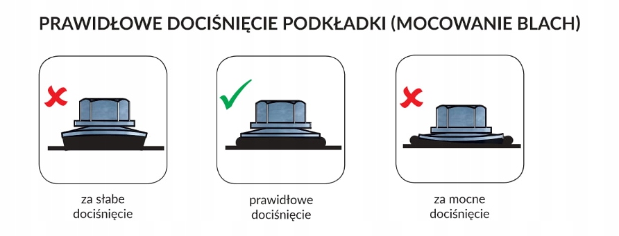Гвинт має сталеву шайбу, форма якої забезпечує правильне розташування ущільнювального матеріалу EPDM. Прокладка EPDM після монтажу вулканізується на металевому листі, гарантує щільне з'єднання і не втрачає еластичності. Він стійкий до погодних умов і УФ-випромінювання.