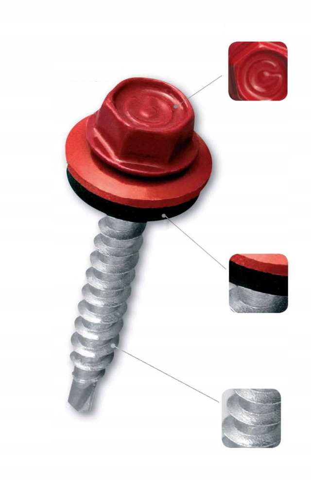 Гвинт має сталеву шайбу, форма якої забезпечує правильне розташування ущільнювального матеріалу EPDM. Прокладка EPDM після монтажу вулканізується на листовому металі, гарантує щільне з’єднання та не втрачає еластичності. Він стійкий до погодних умов і УФ-випромінювання.