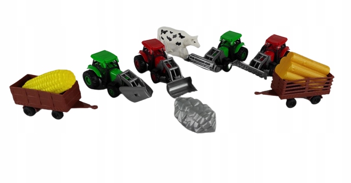 Фільмерський набір із кількох частин для любителів фермерства сільськогосподарських робіт у складі 4 тракторів, 2 причепів та пристосувань.