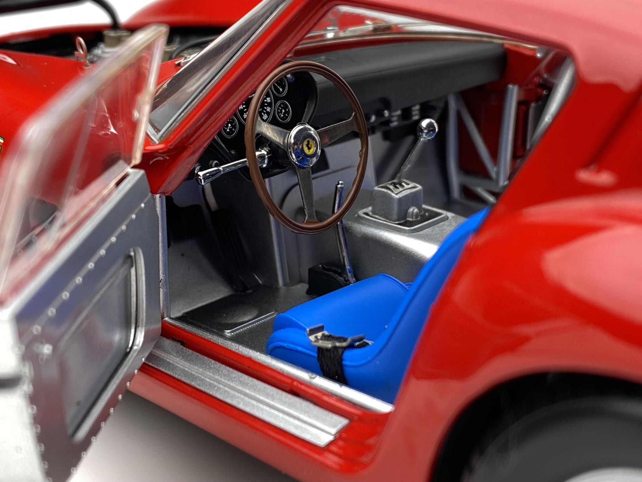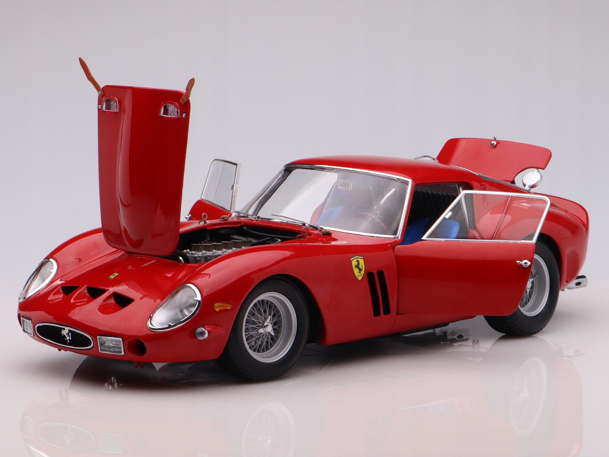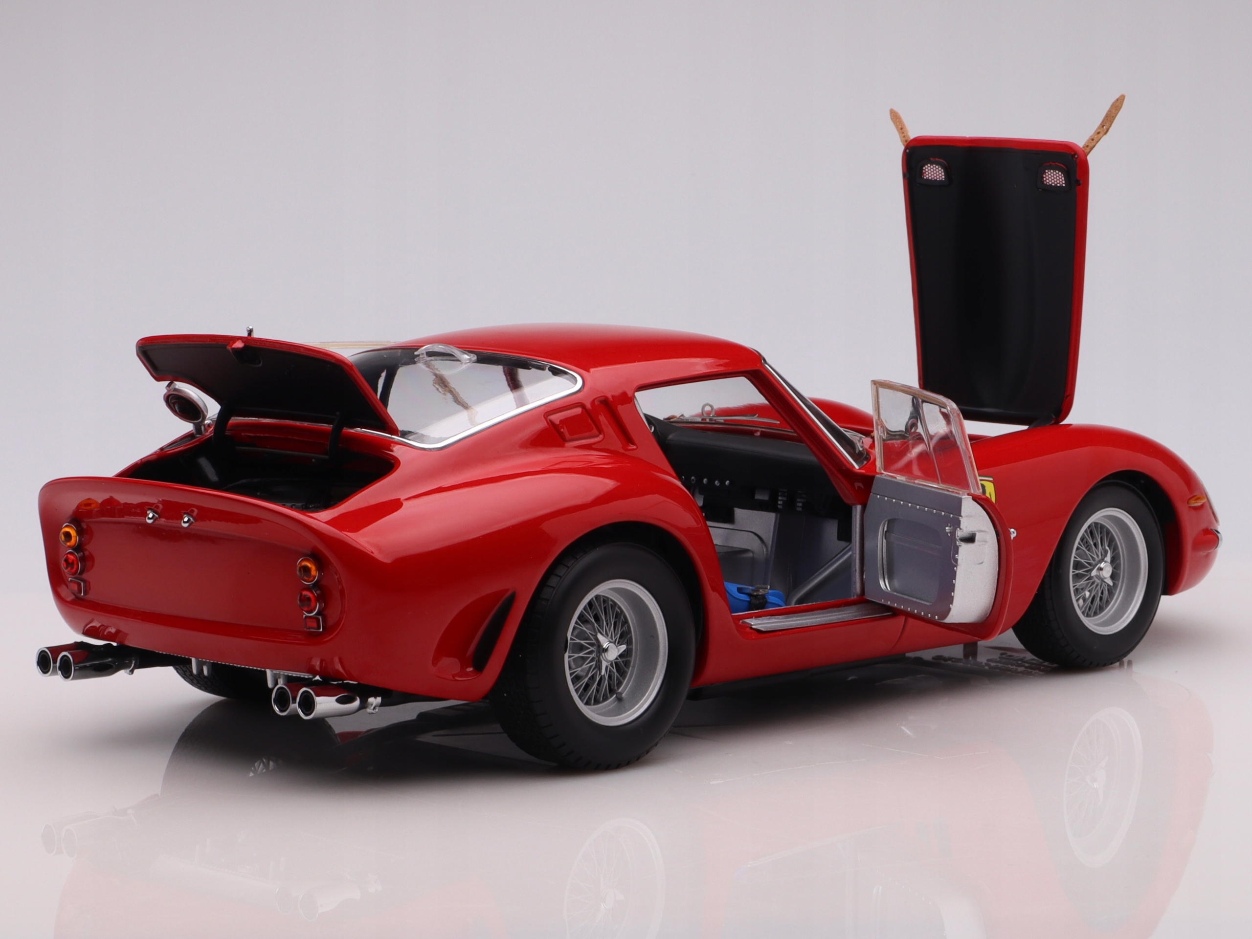 Ferrari 250 GTO 1962 року — культовий автомобіль, який увійшов в історію автомобілебудування як символ досконалості в дизайні та гонках. Модель цього легендарного автомобіля в масштабі 1:18, створена авторитетним виробником Kyosho, є справжньою перлиною в світі колекційних автомоделей. Точна модель Ferrari 250 GTO в масштабі 1:18 вражає бездоганною якістю виготовлення. Червона фарба кузова точно відображає характерний зовнішній вигляд цього культового автомобіля, підкреслюючи його елегантність і спортивний характер.