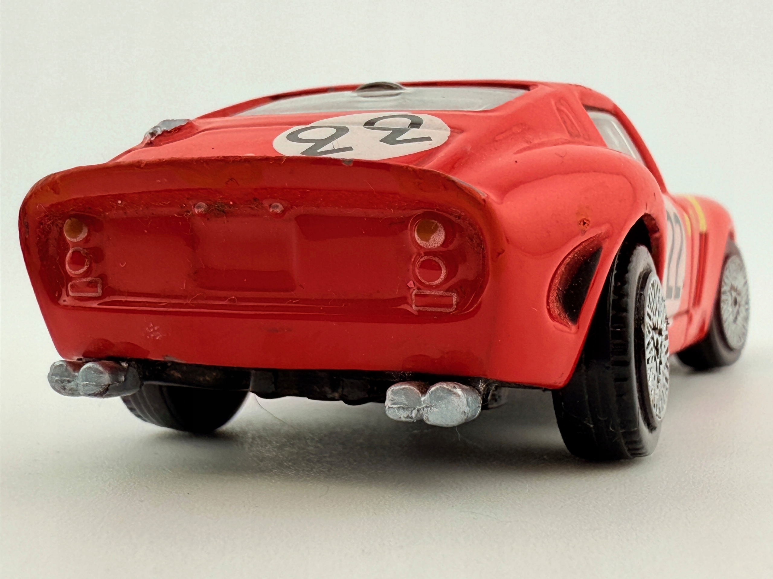 Ця модель базується на справжньому Ferrari 250 GTO, іконі автомобільної промисловості 1960-х років. Його забарвлення відсилає до гоночних кольорів, що підкреслює його спортивний характер. Належить до серії гоночних моделей Burago.