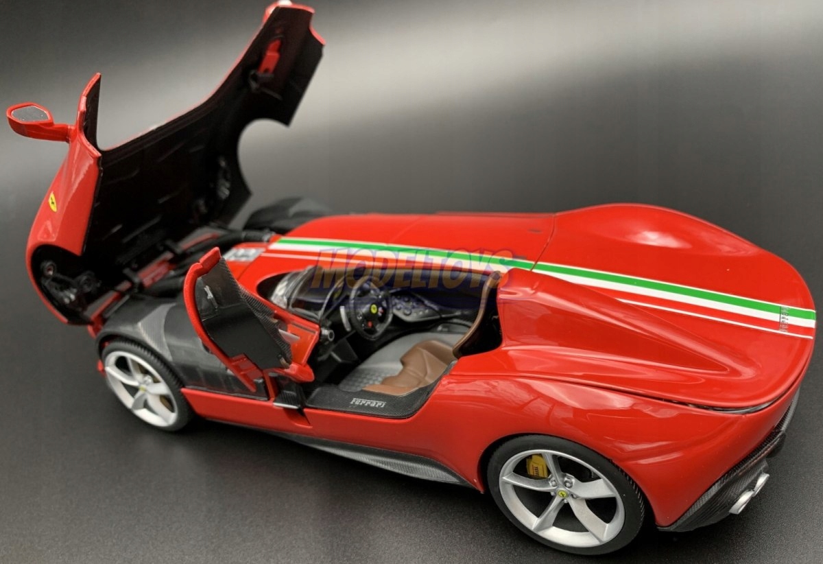 Модель автомобіля Ferrari характеризується увагою до деталей. Має рухливі елементи - двері, колеса, кришку двигуна. Повністю функціональне рульове управління