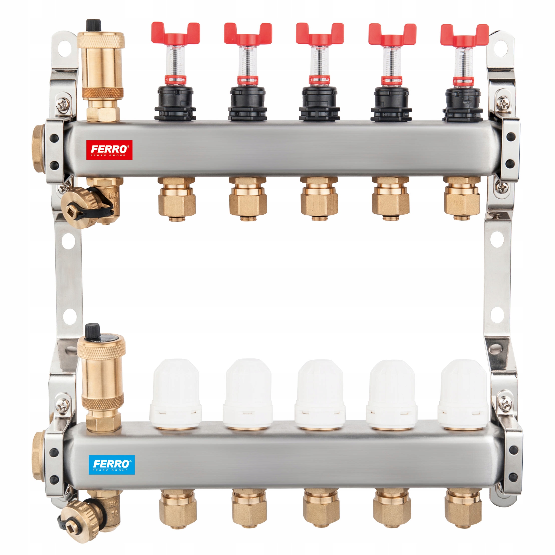 Розподільник складається з дві балки з внутрішнім діаметром 1", виготовлені з нержавіючої сталі AISI 304, що забезпечує їм максимальну стійкість до корозії і тим самим гарантує тривалу безвідмовну роботу пристрою. Додатковим елементом довговічності пристроїв є спеціальні рукоятки з гумовою ізоляцією, які гасять вібрацію і шум Ручки надають конструкції жорсткості і в той же час зберігають постійну відстань між балками Призначені для роботи в радіаторних установках, змішаних установках або для установки в поверхневе опалення - вони ідеально функціонує як з’єднувач елементів системи опалення, одночасно оптимізуючи роботу монтажника.