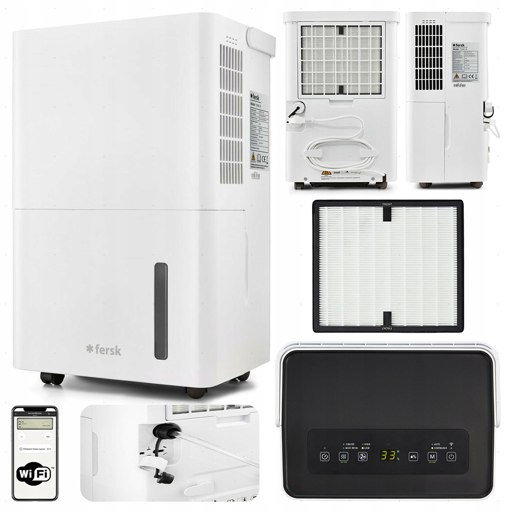Осушувачі Fersk – це сучасні пристрої, що поєднують в собі стильний дизайн, компактні розміри, високу мобільність, високу ефективність осушення та дистанційне керування через WiFi за допомогою мобільного додатку. Вони є чудовим рішенням проблеми занадто високої вологості повітря. Пропозиція бренду включає 2 моделі продуктивністю 20 або 30 літрів на годину. Наявний в пристроях гігростат дозволяє підібрати цільову вологість повітря, яку машини прагнуть досягти і підтримувати самостійно. Крім того, осушення повітря поєднано з очищенням повітря. Завдяки використанню попереднього фільтра, фільтра HEPA та іонізатора повітря осушувачі Fersk ефективно видаляють забруднюючі речовини.