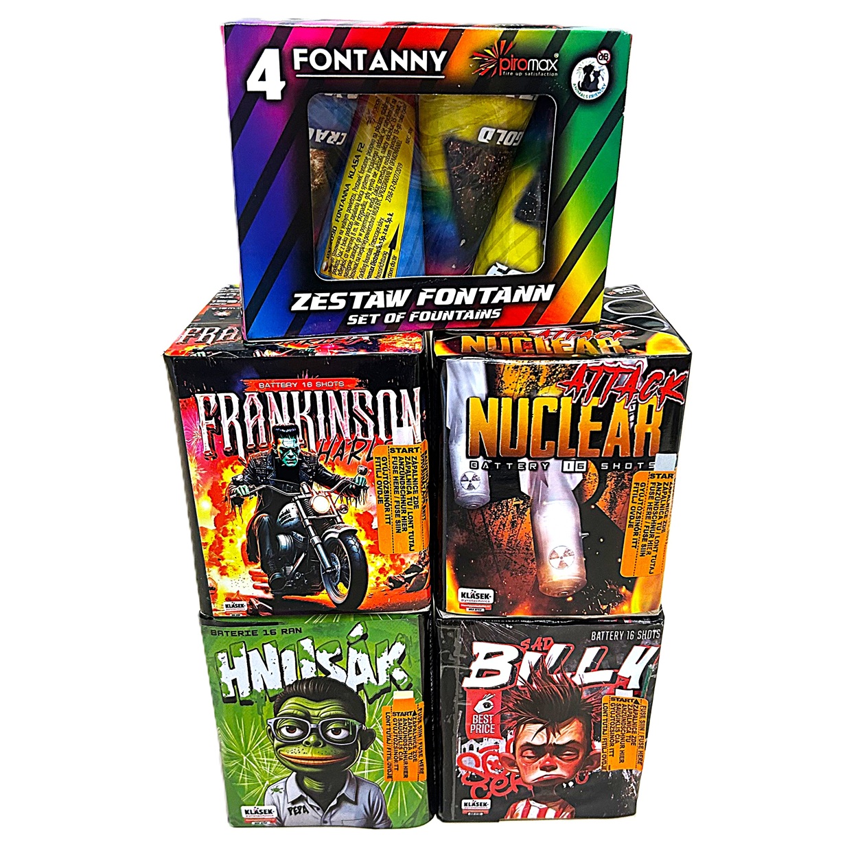 Феєрверк сімейний новорічний набір 4 пускові установки та набір з 4 фонтанів