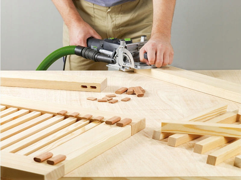 - На 100% захищено від скручування з першого з’єднувача Domino. Починаючи з першого дюбеля DOMINO, з’єднання повністю захищені від скручування, без необхідності вирівнювання заготовок