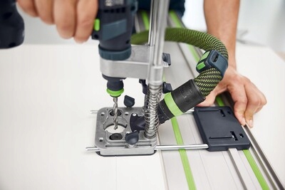Для швидкого свердління в лінії. Адаптер можна прикріпити до всіх напрямних Festool без інструментів.