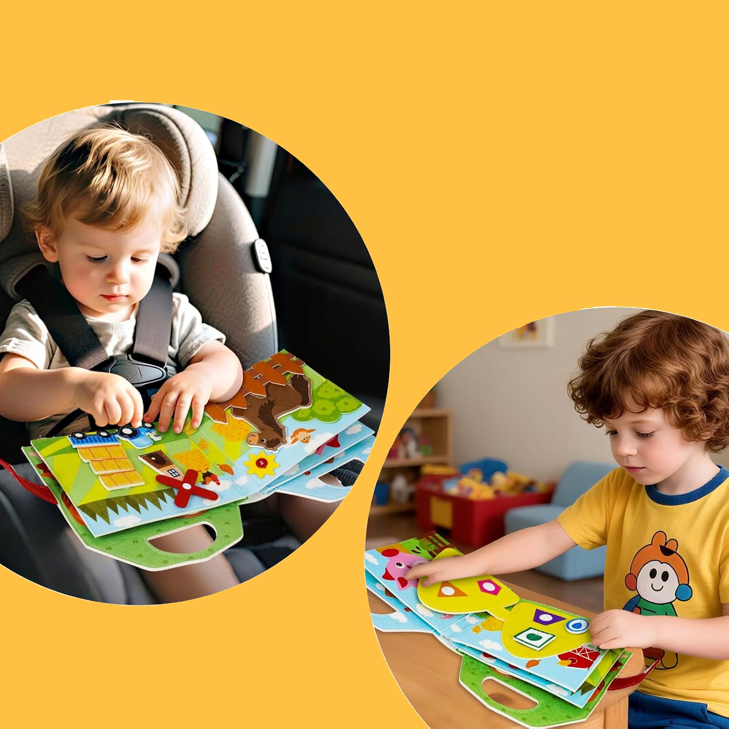 Зроблено з фетру, цей буклет для дітей віком від 1 років є легким, нетоксичним, без запаху і не залишає Беррса. Завдяки технології подвійних швів та кріплення липучки, вона відрізняється від інших клеїв коротким життям та клейким залишками, що робить його більш міцним і безпечнішим.