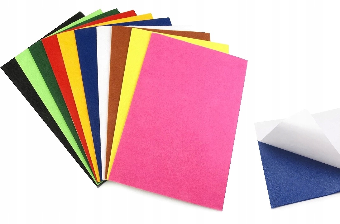 Самоклейний фетр для вирізання, приклеювання, шиття та вишивання. Підходить для декорування різноманітних вітальних листівок, виготовлення фігурок, тварин або брошок. Деякі предмети можуть містити делікатний блиск. На окремих шматках можуть бути невеликі плями.