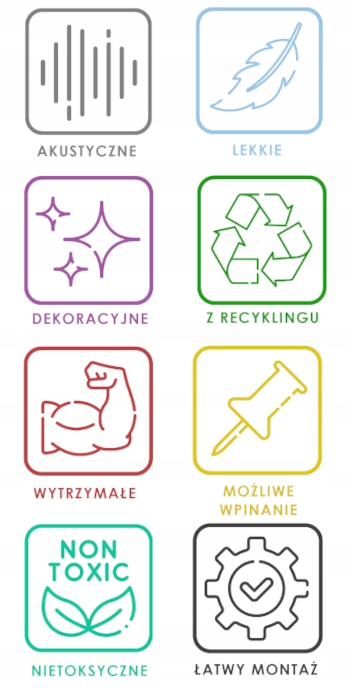 Повсть, яка використовується для виготовлення панелей, не виділяє летких органічних сполук. Він абсолютно антиалергічний, нетоксичний і не подразнює, тому його можна успішно використовувати в дитячих кімнатах!