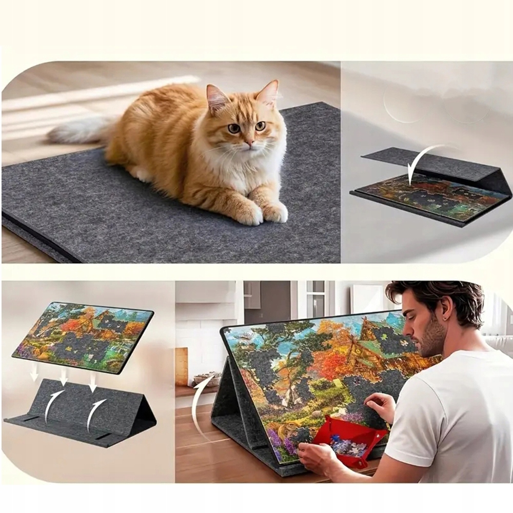 Як підставка: опора використовує фрикційну конструкцію на липучці, що дозволяє стабільно розташувати дошку під бажаним кутом. Як прикриття: дошка захищає незакінчені пазли від пилу та пустощів домашніх тварин.
