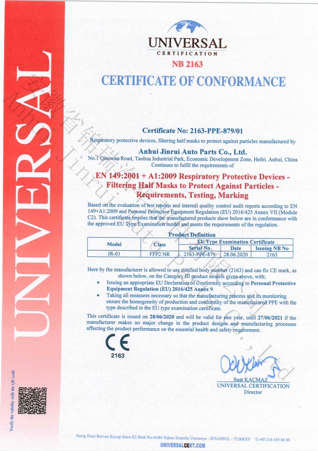 - відповідає європейському стандарту EN 149:2001+A1:2009,