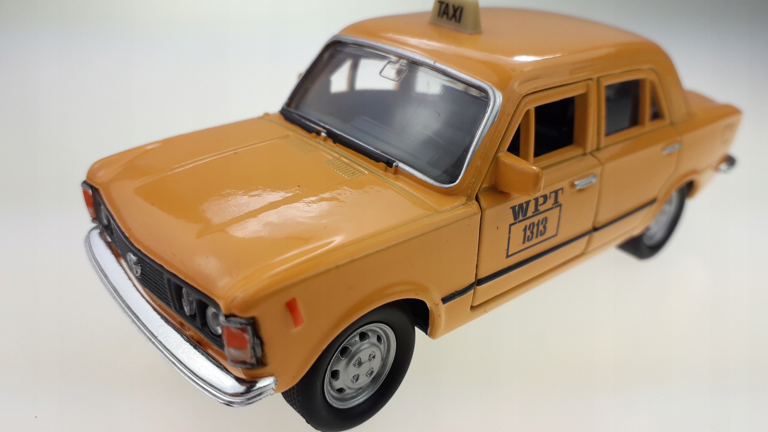 FIAT 125p TAXI ЖОВТИЙ МЕТАЛ МОДЕЛЬ WELLY 1:34