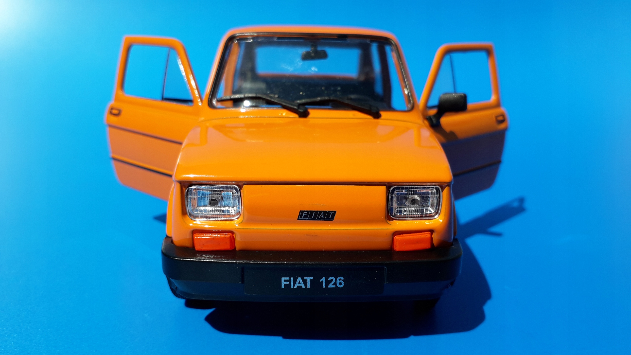 Fiat 126p малюк помаранчевий кашель велика металева модель Велі 1:21