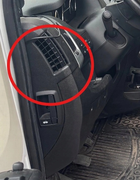 Кріплення зліва, поруч із потоком повітря, біля важеля відкриття маски.
