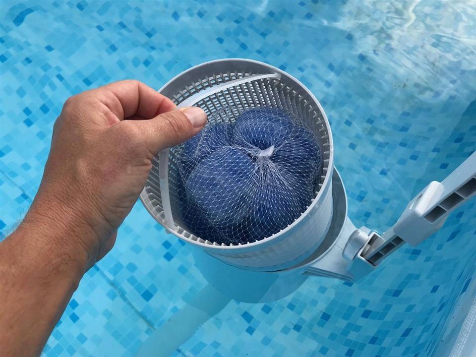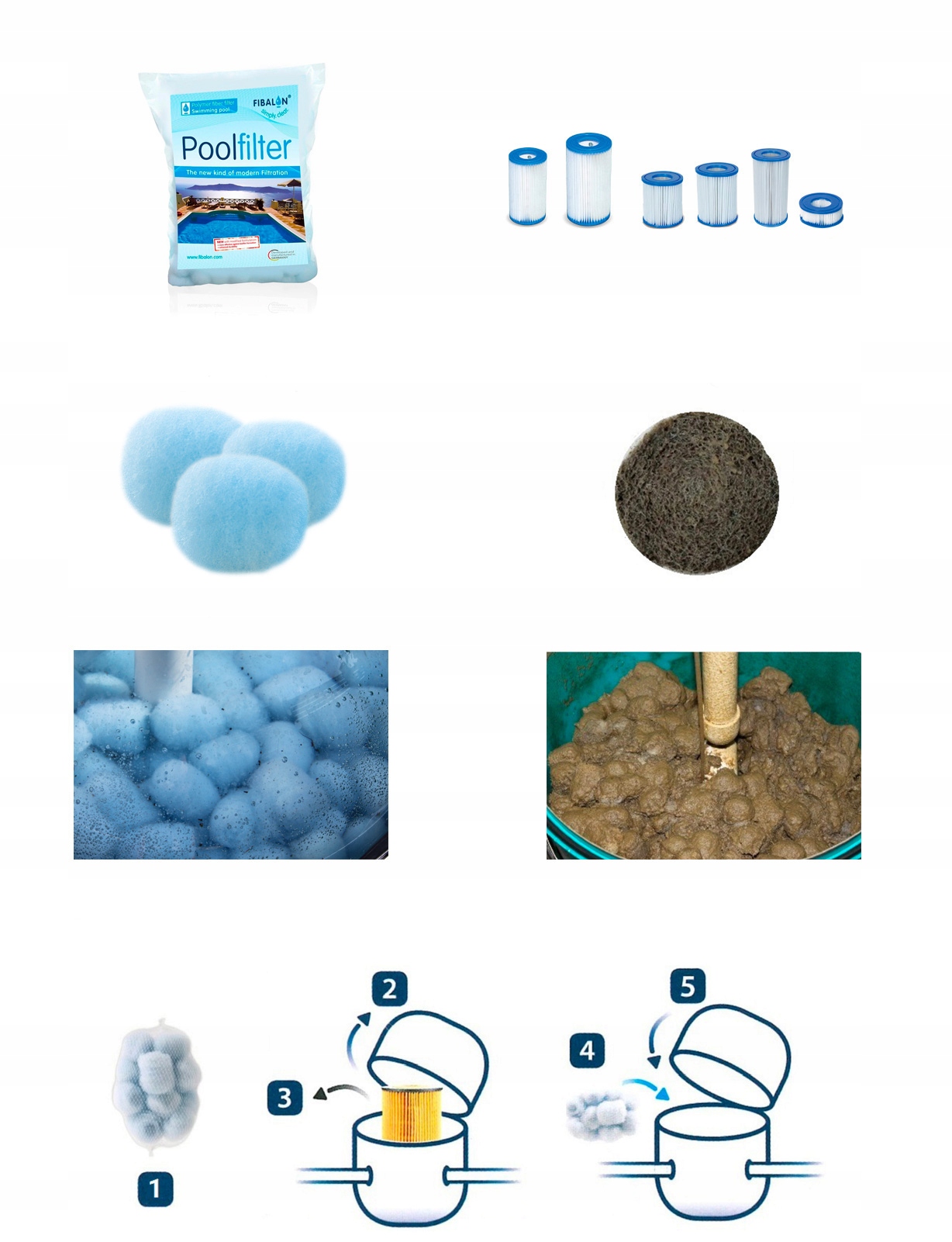Як використовувати: упаковані в сітку кульки Fibalon (у такому вигляді вони будуть відправлені) необхідно помістити на місце наявного фільтра, увімкнути і використовувати насос фільтра в звичайному режимі. спосіб. У разі великої різниці у висоті або ширині наявного фільтра, кульки Fibalon можна вийняти з сітки та вільно розмістити замість наявного фільтра, не розминаючи. Сітка з 11 фільтруючими кульками також може бути розміщена в скіммері, що забезпечує набагато кращу попередню фільтрацію, захищаючи фільтруюче середовище в насосі для басейну (включно з піском, склом, картриджами тощо). Кульки Fibalon поглинають жирові та інші забруднення, тим самим значно знижуючи навантаження на фільтр в насосі, а містяться в них наночастинки іонів срібла знищують бактерії та віруси та перешкоджають їх утворенню. Їх колір робить їх чудовим індикатором забруднення, а отже, і якості процесу фільтрації. Наскільки вони брудні, видно з першого погляду. Коли Fibalon забрудниться, просто промийте ліжко під сильним струменем води або виперіть вручну, і навіть сітку з кульками можна випрати в пральній машині до чистоти і після прання покласти назад в насос. Рекомендується перевіряти стан куль приблизно кожні 4 тижні. При такому використанні Fibalon легко прослужить 5-7 років, залежно від розміру басейну та ступеня забруднення фільтра, даючи кришталево чисту воду. З екологічної точки зору він свіжий
