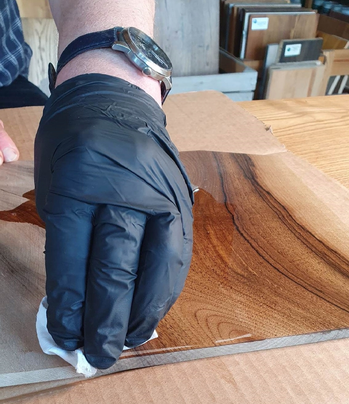Поверхню слід періодично доглядати, додаючи шар олії тканиною. На стільницях і гітарах перед нанесенням шару догляду поверхню можна відшліфувати папером або сталевою ватою та очистити від пилу.