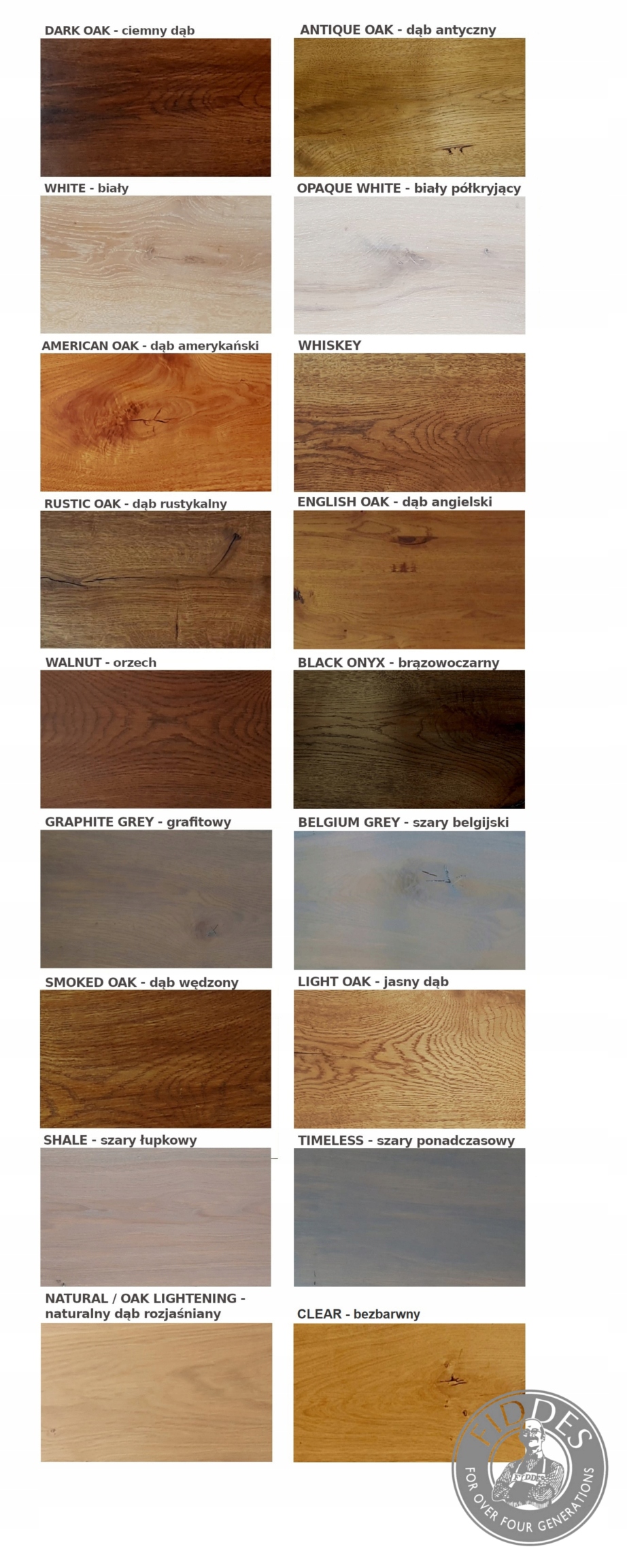 Кольори можуть насправді відрізнятися від тих, що видно на фото, що пов'язано з технічними можливостями монітора та типом деревини, на яку буде нанесено масло-віск , спосіб і товщину шліфування, кількість шарів тощо