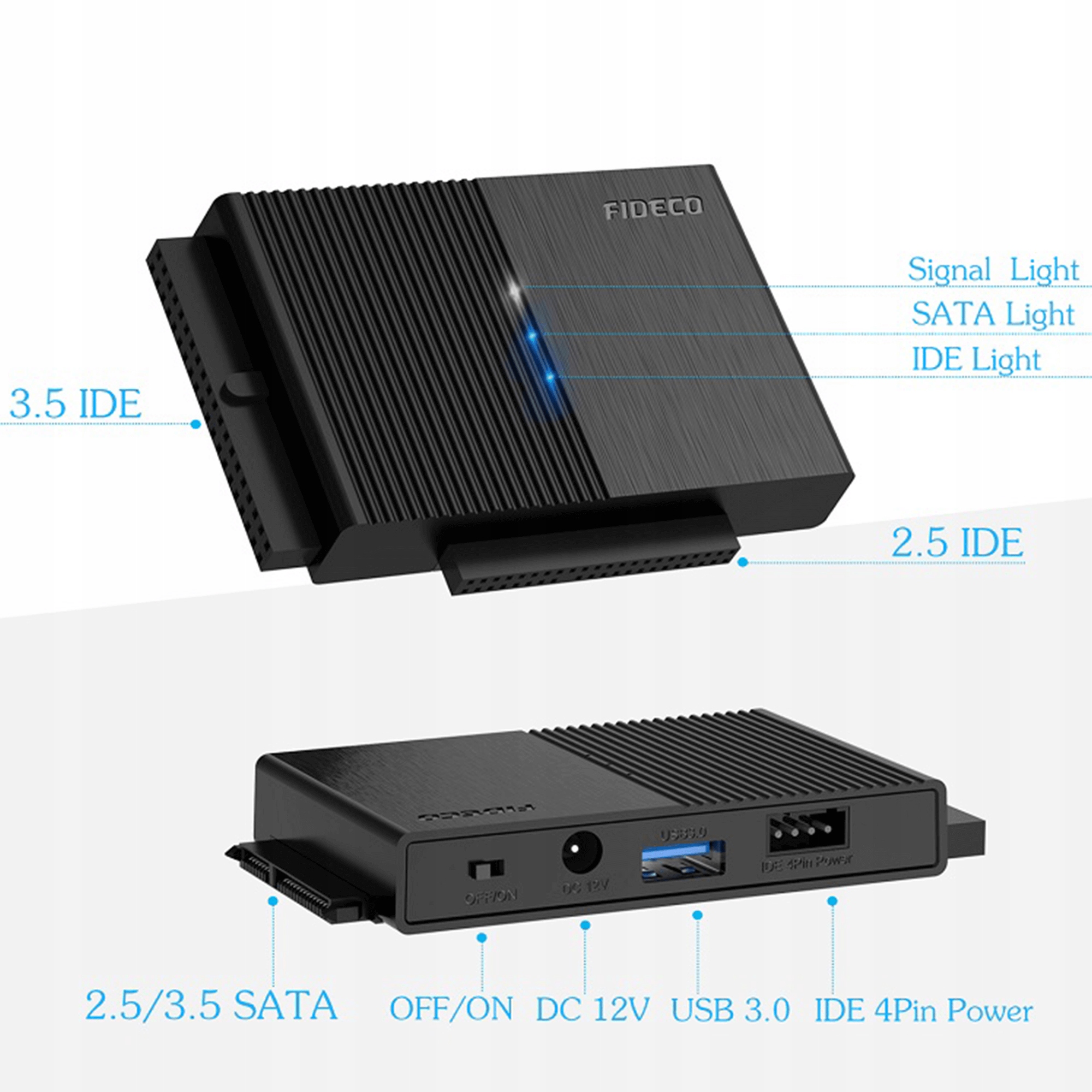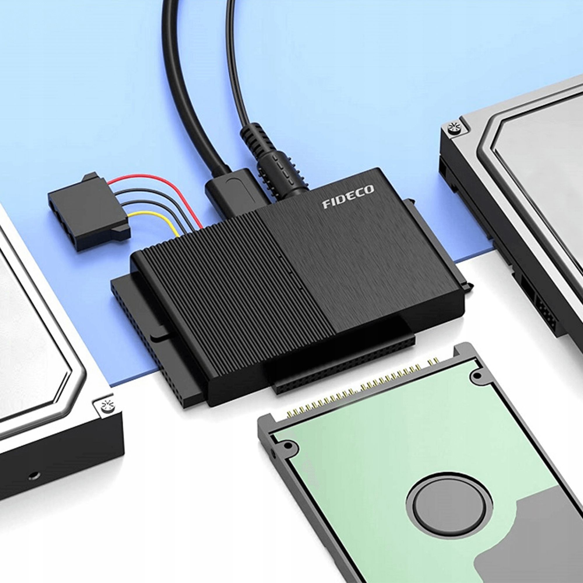 Міст PL319 від Fideco призначений для підтримки HDD і SSD накопичувачів з роз'ємами IDE і SATA I/II/III розміром 2, 5 " і 3,5". Він забезпечує одночасну роботу трьох накопичувачів з максимальною ємністю 16 ТБ кожен. Крім того, адаптер підтримує CD і DVD приводи через роз'єм IDE. Його розміри невеликі, а технологія plug and play забезпечує швидку роботу без необхідності встановлення драйверів.