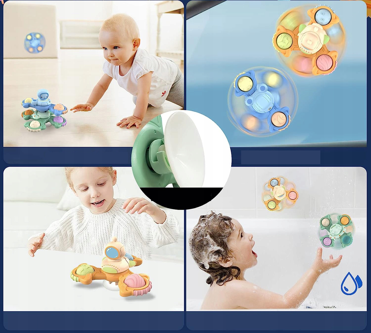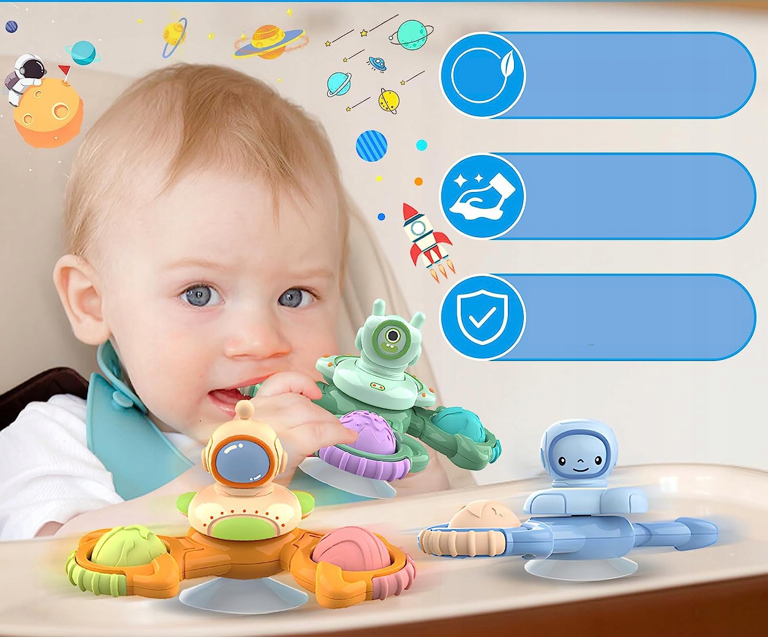 Іграшка-космонавт із знімною чашкою-присоскою, що обертається, іграшка для ванни, що обертається, кольорове тактильне пізнання